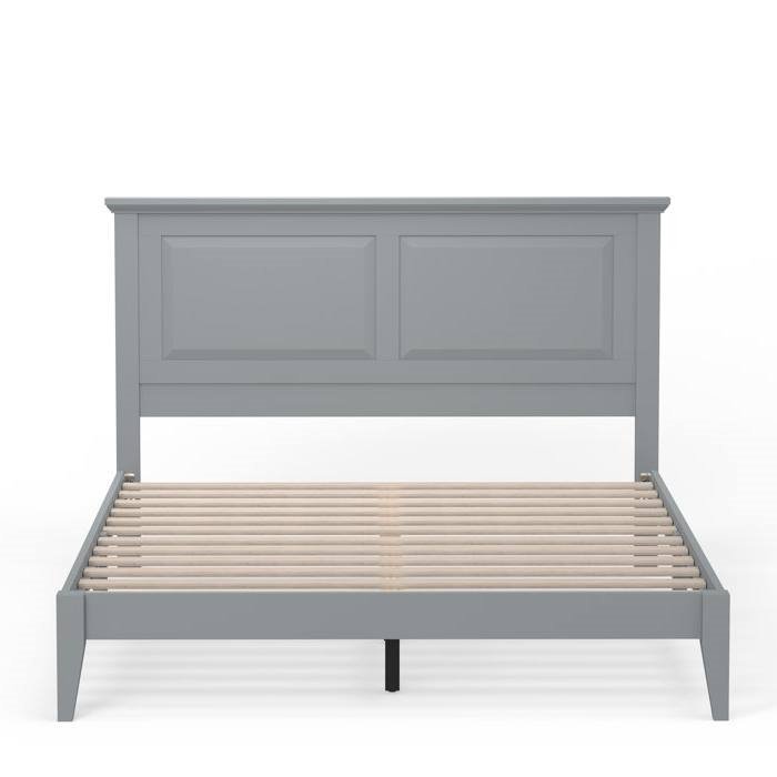 Queen Traditional Solid Oak Wooden Platform Bed Frame with Headboard in Grey