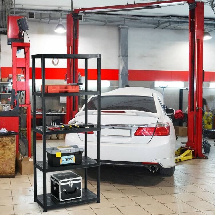 This Black Multifunction 5 Tier Sturdy Polypropylene Storage Shelf is be a perfect addition for any home or office! The boards and tubes of the rack are made of thick and solid plastic, which is sturdy, stable and not easily deformed. It can stand firmly on the floor and is equipped with a large load-bearing capacity. Thanks to its waterproof surface it can be used both indoors and outdoors, allowing you to store and display all of your items. You can choose how many layers you need according to the height of the room. Also, thanks to the connection with the wall, it will prevent the rack and your items from falling forward.