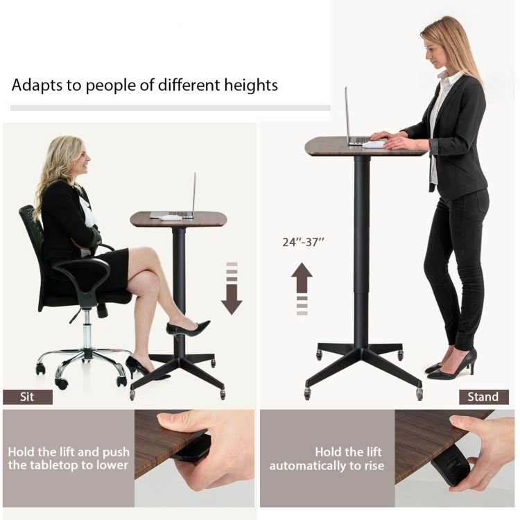 Adjustable Mobile Standing Desk Large TV Tray Table with Lockable Wheels