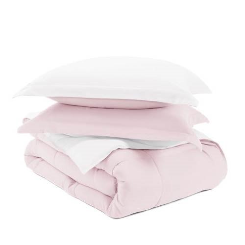 Home > King/Cal King 3-Piece Microfiber Reversible Comforter Set Blush Pink and White